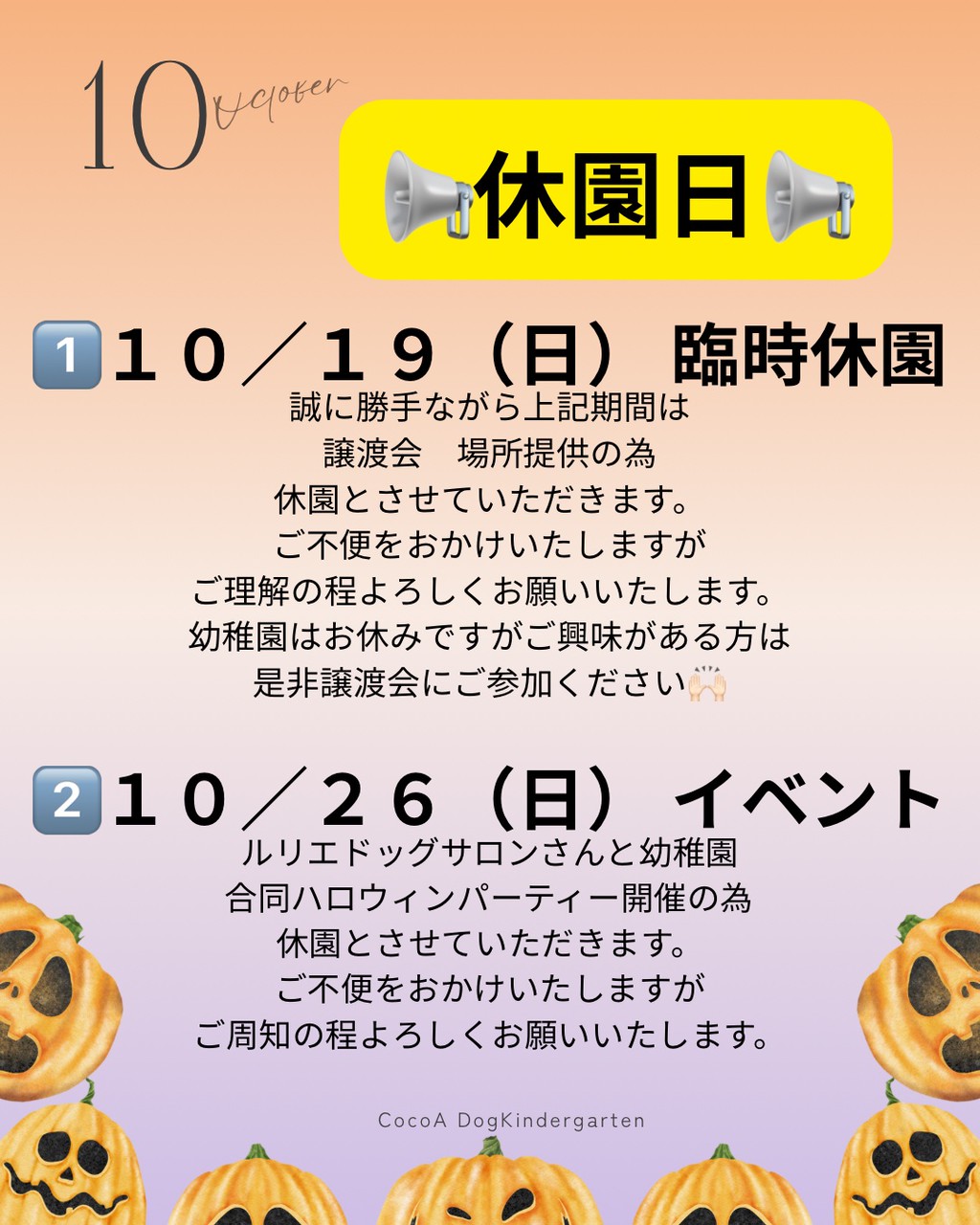 いつも 犬の幼稚園『CocoA DogKindergarten』をご利用いただきありがとうございます!